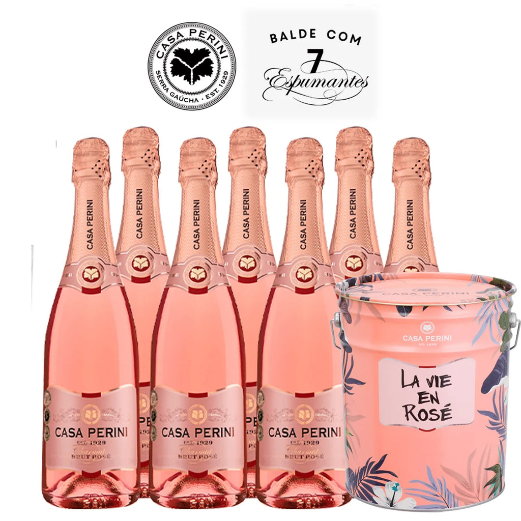 O Balde de Espumante Casa Perini vem com 7 unidades do espumante Brut Rosé.